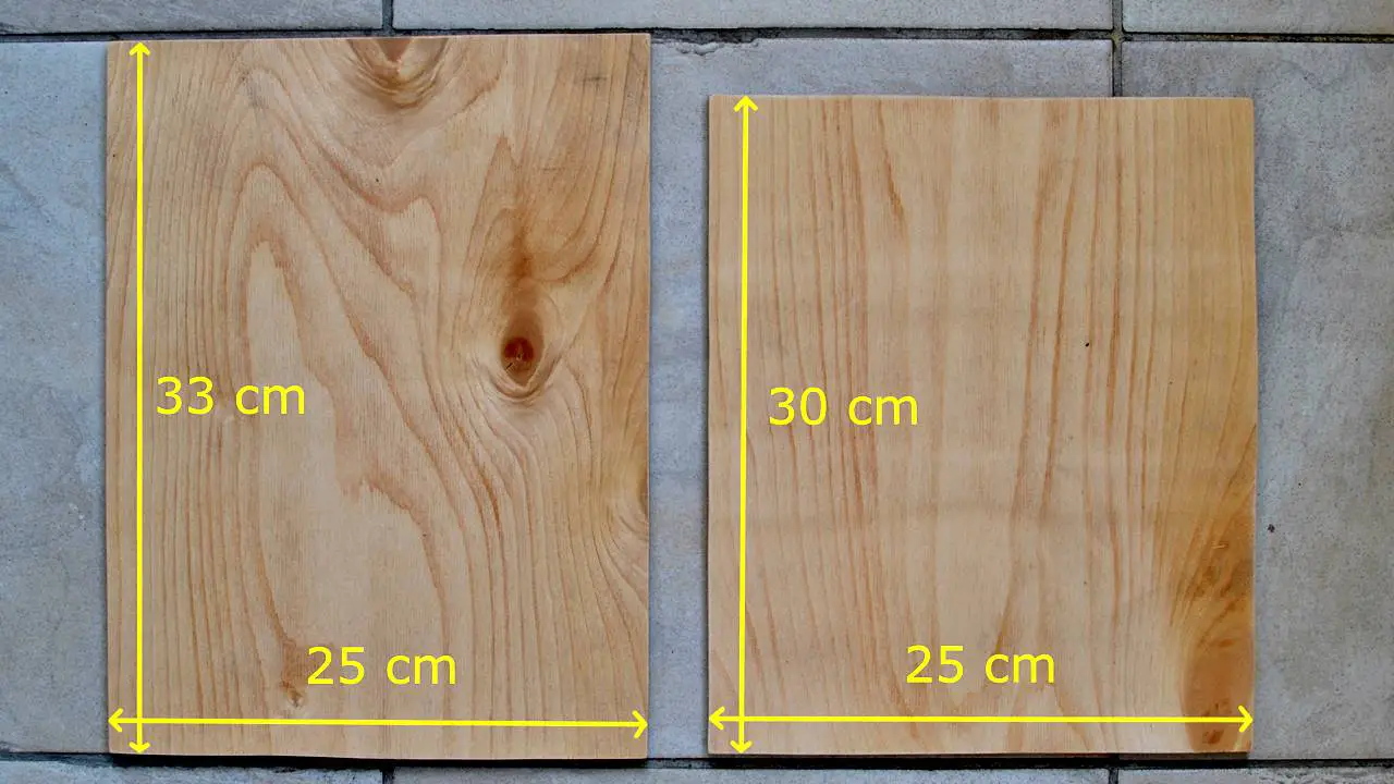 Neben dem Werkzeug werden noch zwei Holzplatten benötigt, die in jedem Baumarkt erworben werden können. Die beiden Platten sollten mind. 2 cm dick sein und folgende Maßen aufweisen: